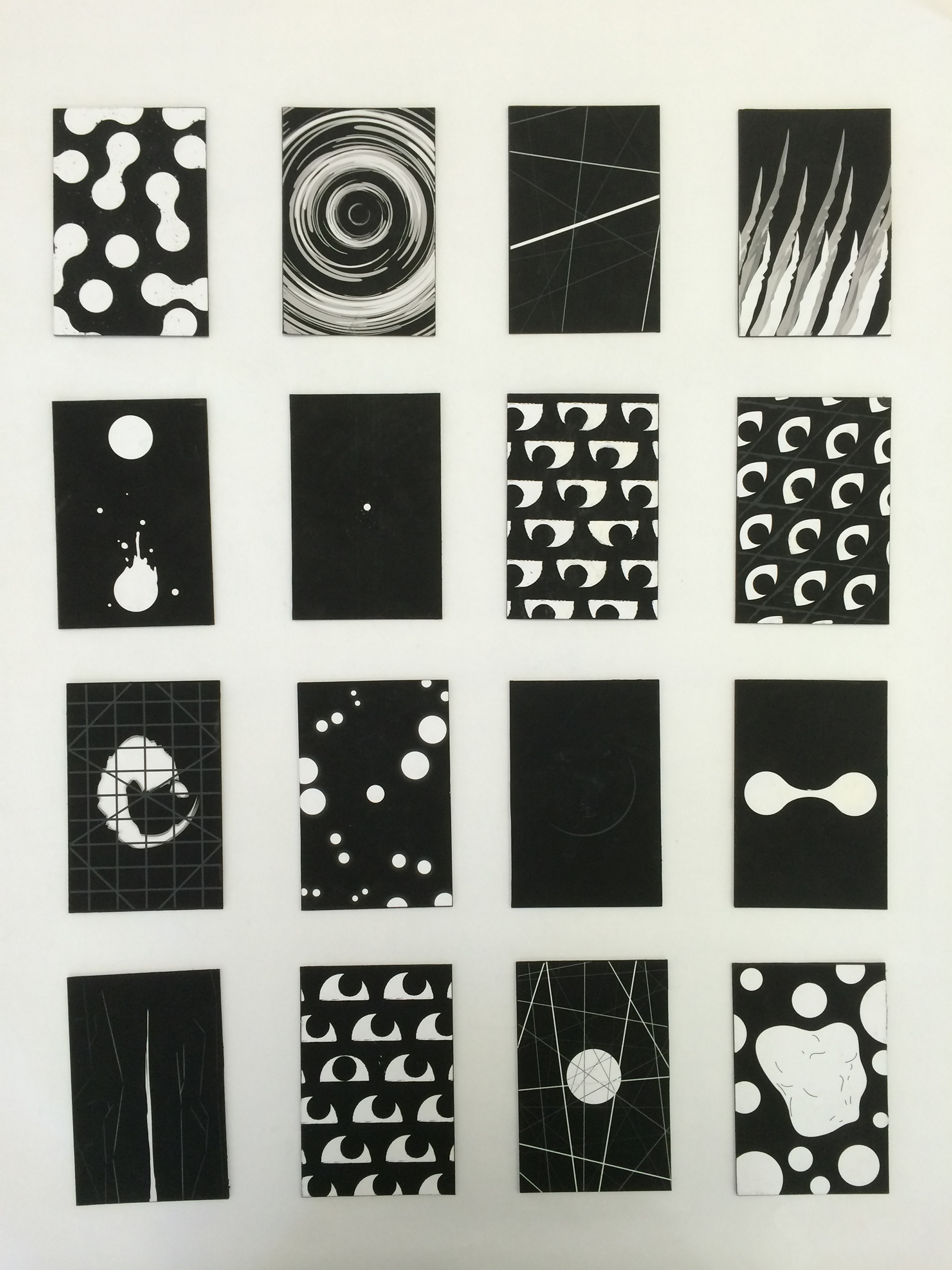 A piece I did for my Spring semester Design class (RISD Freshman year, 2015). The assignment was called 'House of Cards', a project issued by Nikki Juen. The project required the construction of 16 double-sided cards that told a narrative while being consistent in theme/visuals. Each of the cards needed to refer to a design term as well, such as Harmony, Simplicity, Asymmetry, Symmetry, etc. The cards also needed to be housed in a box of some sort. My narration was on my fears, and I used the design terms to represent a fear. The backside of the cards have an illustrated representation of the design term and fear. The Victorian silhouettes are of myself. The outside of the box is cream colored. However, the inside is pitch black. I used psychological manipulation when I presented this piece by telling people they were absolutely not allowed to look inside the box when reaching for the cards at the back, creating fear, which was confirmed by the feeling strings hanging inside the box (similar to cobwebs). Each card was made on Adobe Illustrator, and then mounted on boards and cut. The box (housing) was made from museum board.